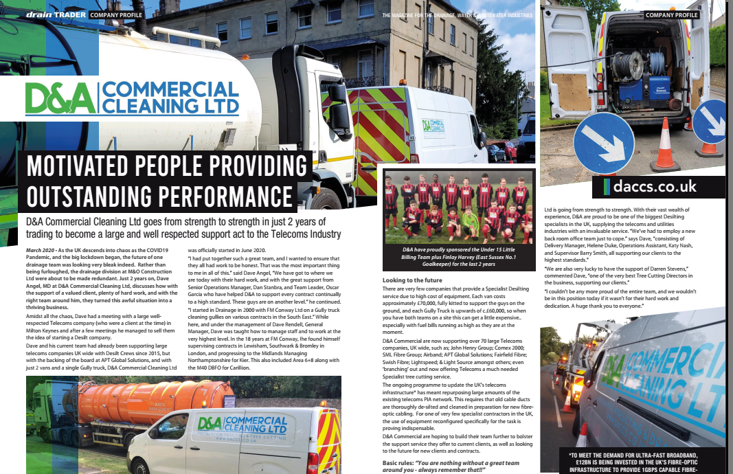 Drain Trader has supported and encouraged the work done by D&A by publishing the blog in their magazine in December 2022. Drain Trader also encouraged the health and safety measures we take during the services we provide.